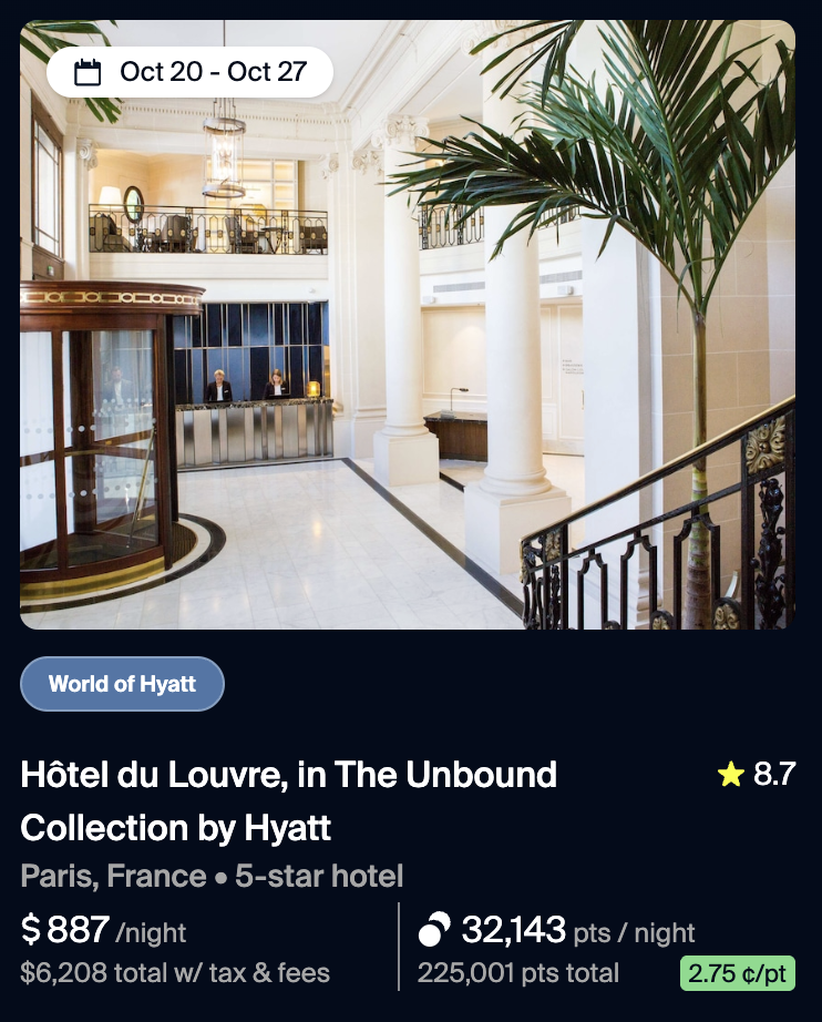 When you search for a hotel, Gondola shows you the cash rate, the points rate, and the cents per point value you get if you use your points. This helps you decide what works best for you and your points.