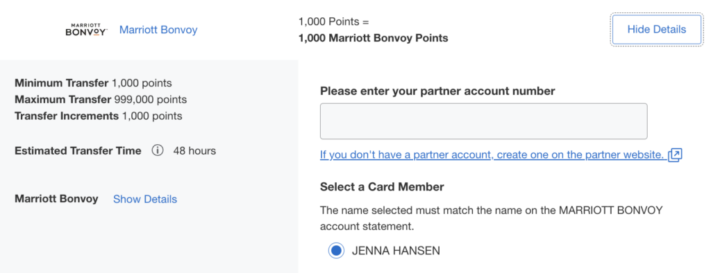 Finally, enter how many points you want to transfer, then confirm the transaction. Most transfers are instant. However, there are rare times when it can take a few days. Remember to always find availability with the airline or hotel before you transfer your points.