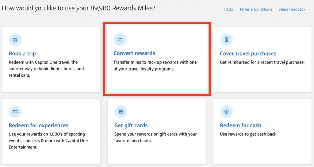 Next, choose Convert Rewards.