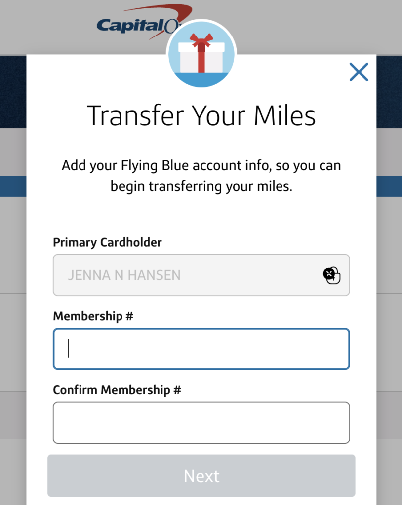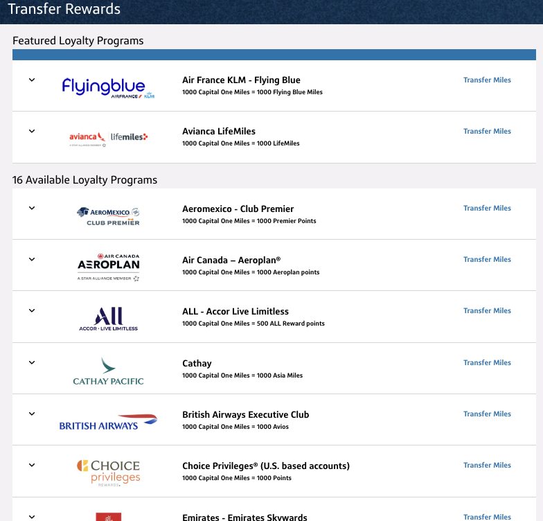 Here are the steps for transferring Capital One Miles to travel partners.