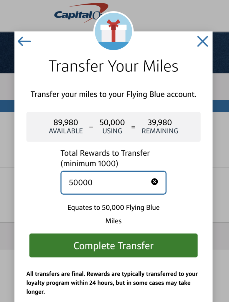 HOW TO TRANSFER CAPITAL ONE MILES