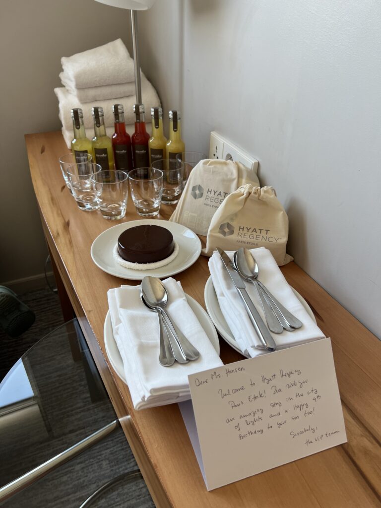 Goodies that were waiting for us at the Hyatt Regency Paris Etoile!
