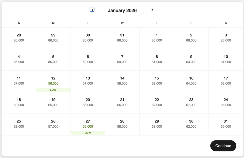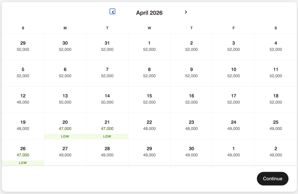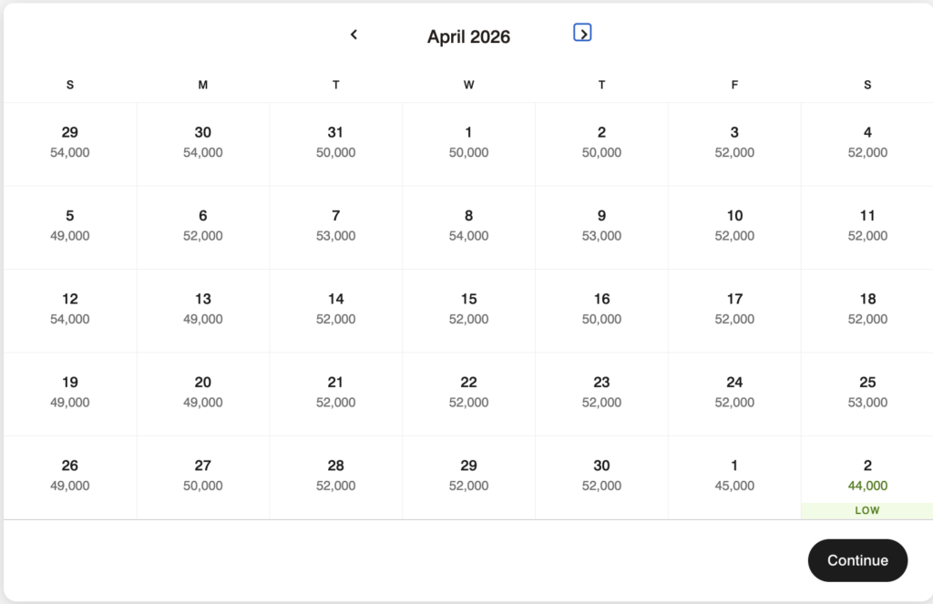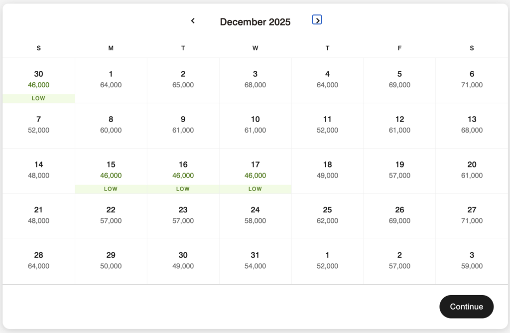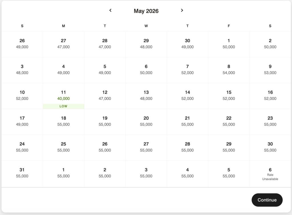 I tried to find a mix of options that don’t require topping off with ones that will require topping off with additional points. Be sure to use the award calendar to search around for the lowest-priced dates.