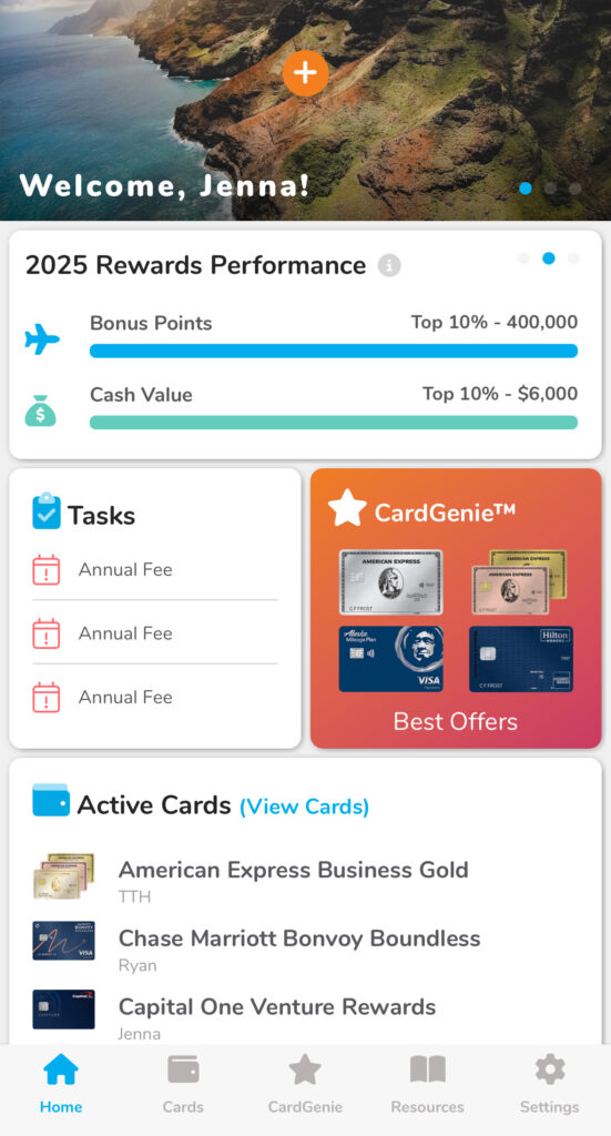 Travel Freely is an incredibly helpful app for keeping track of your cards. It tracks your 5/24 status, annual fee due dates, and minimum spend deadlines for new welcome offers. It tells you when you’re ready for a new card and recommends cards for you based on what you have and what you’re eligible for. It also tracks cards for multiple people and businesses, all with the same app and login.