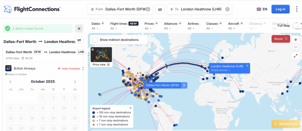 FlightConnections is not an award search tool, but it’s a helpful website for knowing which airlines fly in and out of which airports. This can be a great place to start when searching for award flights, as it allows you to know which airline or airline partners to look at, depending on your destination.